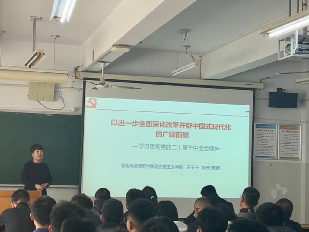 报告会上,马克思主义公司经理王玉芬教授以《以进一步全面深化改革开辟中国式现代化的广阔前景》为题,从“进一步全面深化改革、推进中国式现代化的重大意义和总体要求”“进一步全面深化改革的系统部署”“进一步全面深化改革、推进中国式现代化的保障”3个方面深入阐述党的二十届三中全会精神,并结合现实案例,生动地讲解如何落实全会的重要思想。宣讲报告主题鲜明、视野开阔、论述深刻、内容丰富,对大家深刻领会、准确把握、全面落实党的二十届三中全会精神具有重要作用。